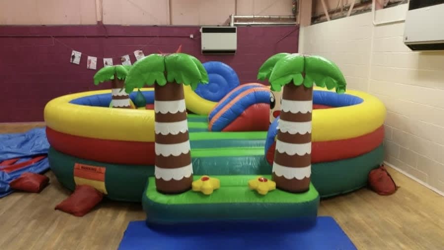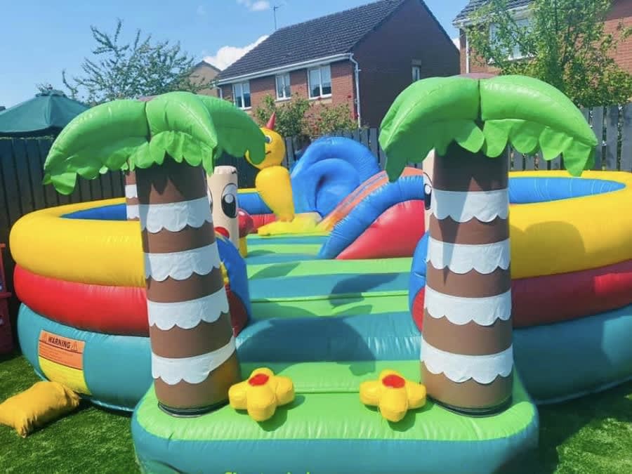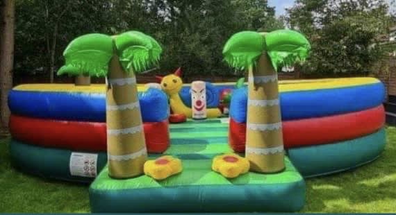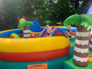 🐵 Bring the jungle to your garden! This vibrant toddler-friendly bouncy castle is packed with fun jungle colours, palm tree features, and adorable inflatable characters – designed to give little ones a safe, exciting place to bounce, crawl, and explore.